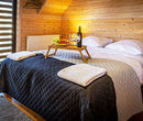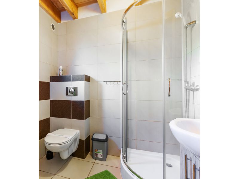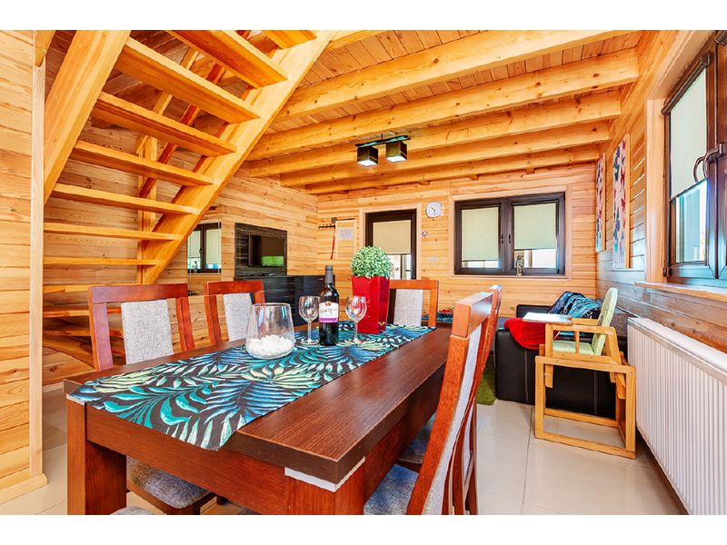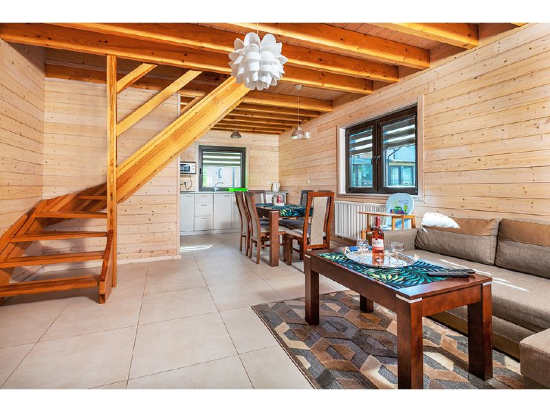 Na parterze Goście mogą spędzać czas w wygodnym salonie, w którym znajduje się podwójna rozkładana sofa, stolik,kawowy oraz stół z krzesłami. Na parterze znajduje się również łazienka oraz w pełni wyposażony aneks kuchenny. Kuchnia spełni oczekiwania nawet najbardziej wymagających Gości: wyposażona jest w chłodziarkę, kuchenkę mikrofalową, dwupalnikową płytę grzewczą, zestaw garnków, naczyń i sztućców, a także "zestaw startowy" - płyn do mycia naczyń, gąbkę, ścierkę. Bogate wyposażenie pozwoli przyrządzić pyszny posiłek w rodzinnej atmosferze - w końcu kuchnia to serce domu, więc warto o to serce zadbać również na wyjeździe, Na piętrze przygotowaliśmy dla Ciebie dwie sypialnie dwuosobowe: jedna wyposażona w łóżko małżeńskie, druga w 2 osobne wygodne łóżka pojedyncze. Nasze domki w Jastrzębiej Górze przystosowane są dla alergików - sypialnie wyposażone są w specjalne poduszki oraz kołdry hipoalergiczne firmy Medical.