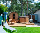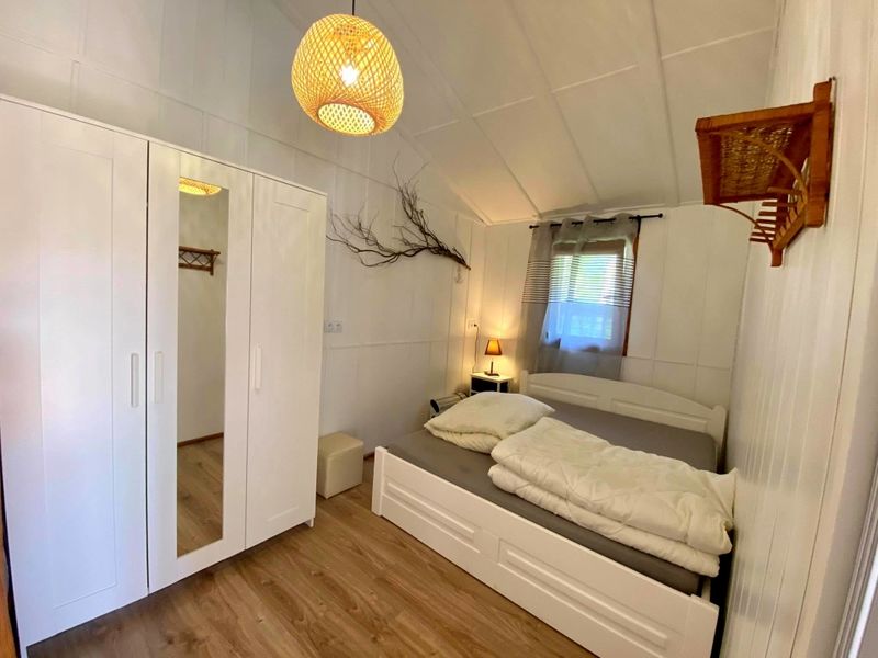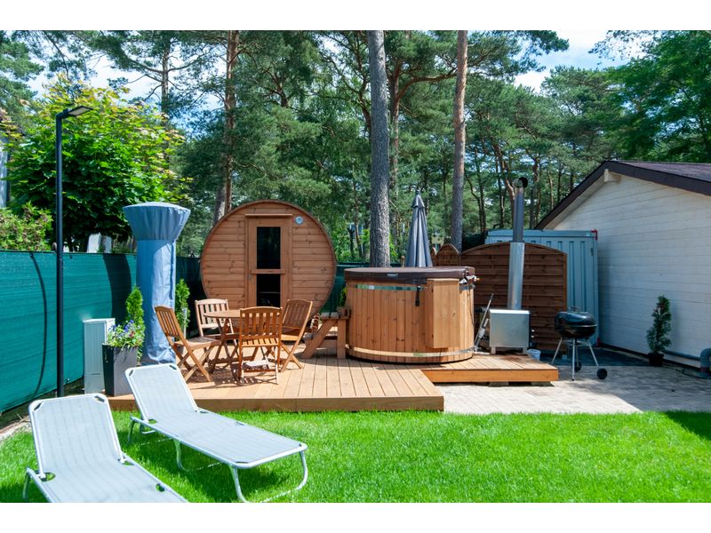 Oferujemy domki 2 osobowe i 4 osobowe. Posiadamy plac zabaw dla milusińskich, jeżdzące zabawki ogrodowe, bespłatne grille, Wi-Fi oraz saunę suchą z balią z podgrzewaną wodą.