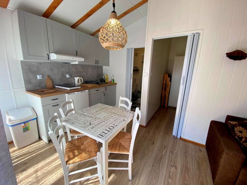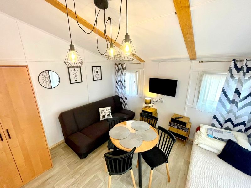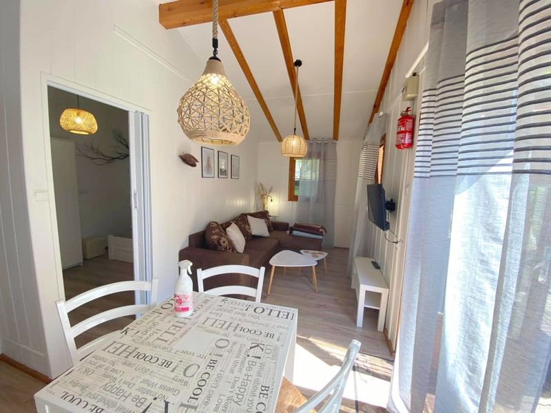 Domki są wyposażone w aneks kuchenny, dwa pokoje i łazienkę. Każdy ma akcesoria na plażę: leżaki i parawan.