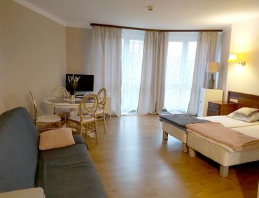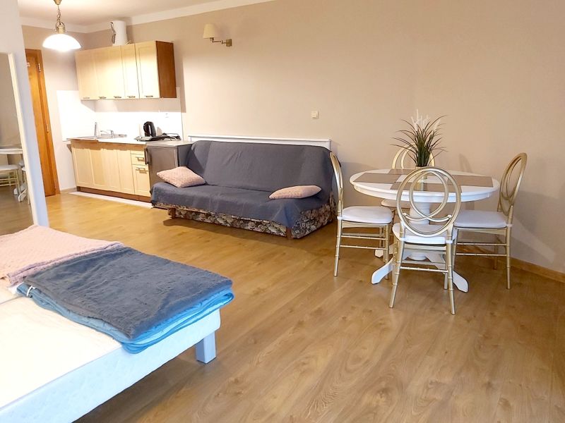 Przestronny apartament całoroczny 3-4 osobowy 33m2 z aneksem kuchennym i prywatną łazienką położony w dzielnicy nadmorskiej przy ulicy Kasprowicza 12C.